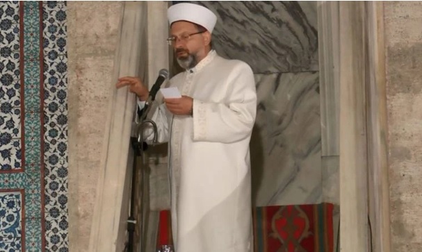 Camiden çıkarken gazetecilere açıklama yapan Erbaş “Bu yıl Ramazan çok bereketli geçti. Teravih Namazları çok coşkulu geçti. 2 yıl Teravih Namazı’nı camilerde kılamamıştık. Onun özlemini bu sene gidermiş olduk. İngilizce kısmı özet ve bir paragraftı. Cemaat içerisinde Türkçe bilmeyenler var hem onlar için hem de dünyaya mesaj verdik. Bayram Müslümanlar için olduğu kadar bütün insanlık için de bir sevgi günleridir” dedi.