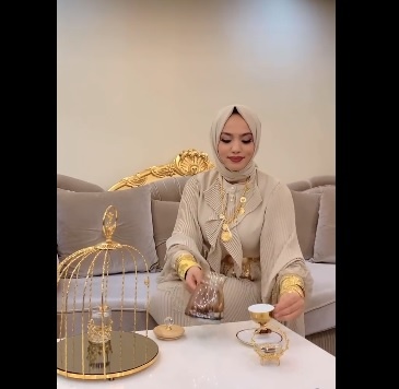“Altın Kafeste Kahve Sunumu” akımına katılan bir kadının videosu sosyal medyada çok konuşuldu. Çok kişi tarafından paylaşılan ve sayısız yorum alan söz konusu videoda kollarında birçok altın bilezik bulunan bir kadının, altın rengi bardaklarda kahve sunumu yaptığı görülüyor. Fonda ise “Zenginlik, mal, mülk neye yarar, kalbimde sen olmayınca” şarkısı çaldığı görüldü.