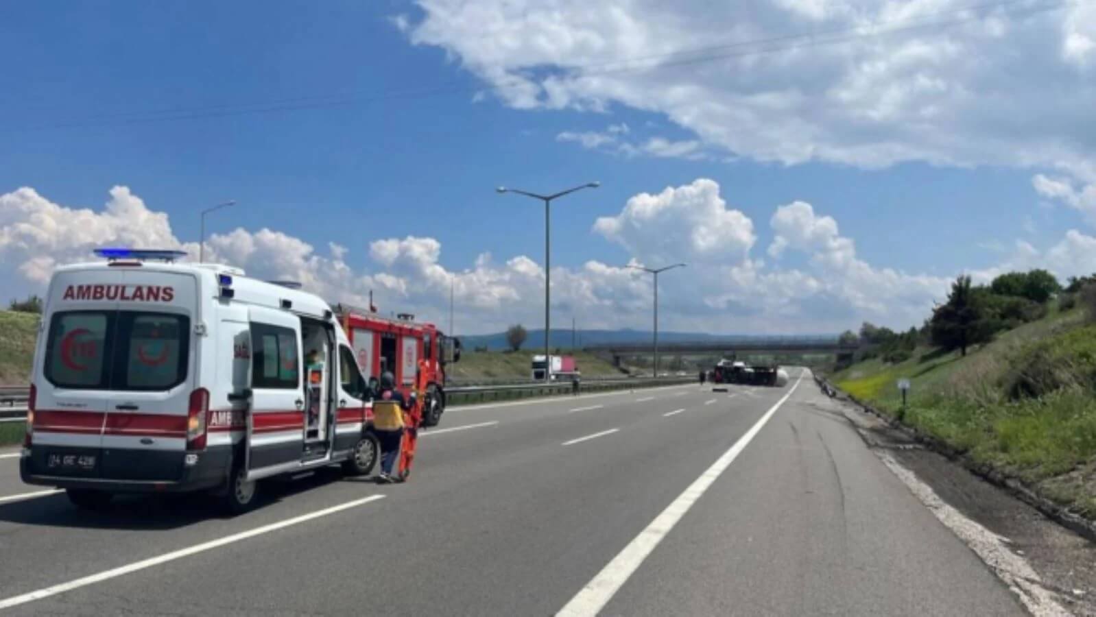 Tanker sürücüsünün hafif yaralandığı kaza nedeniyle otoyolun İstanbul ve Ankara istikametinde ulaşım sağlanamıyor. Bölgede trafik akışı, D-750 kara yoluna yönlendiriliyor. Tankerin olay yerinden kaldırılması için çalışma başlatılırken, itfaiye ekipleri de tedbir amaçlı soğutma çalışması yürütüyor.