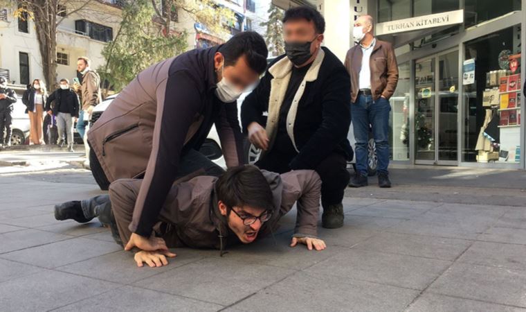 Polis, gençlerin ellerini arkadan plastik kelepçeyle bağlayarak gözaltına aldı.