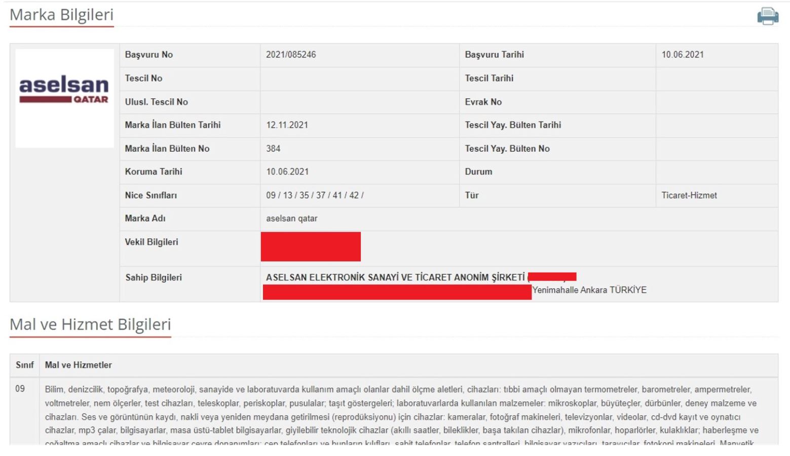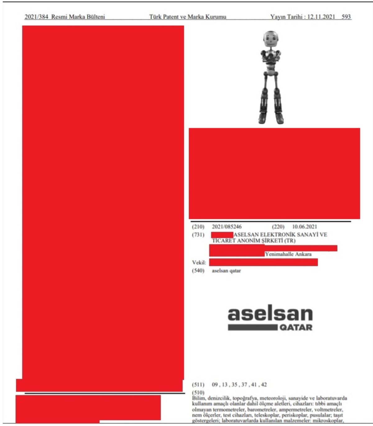 Milli savunma sanayiinin kritik şirketi ASELSAN, Türk Marka ve Patent Kurumu’na başvurarak, “aselsan QATAR” markasını tescil ettirdiği ortaya çıktı.