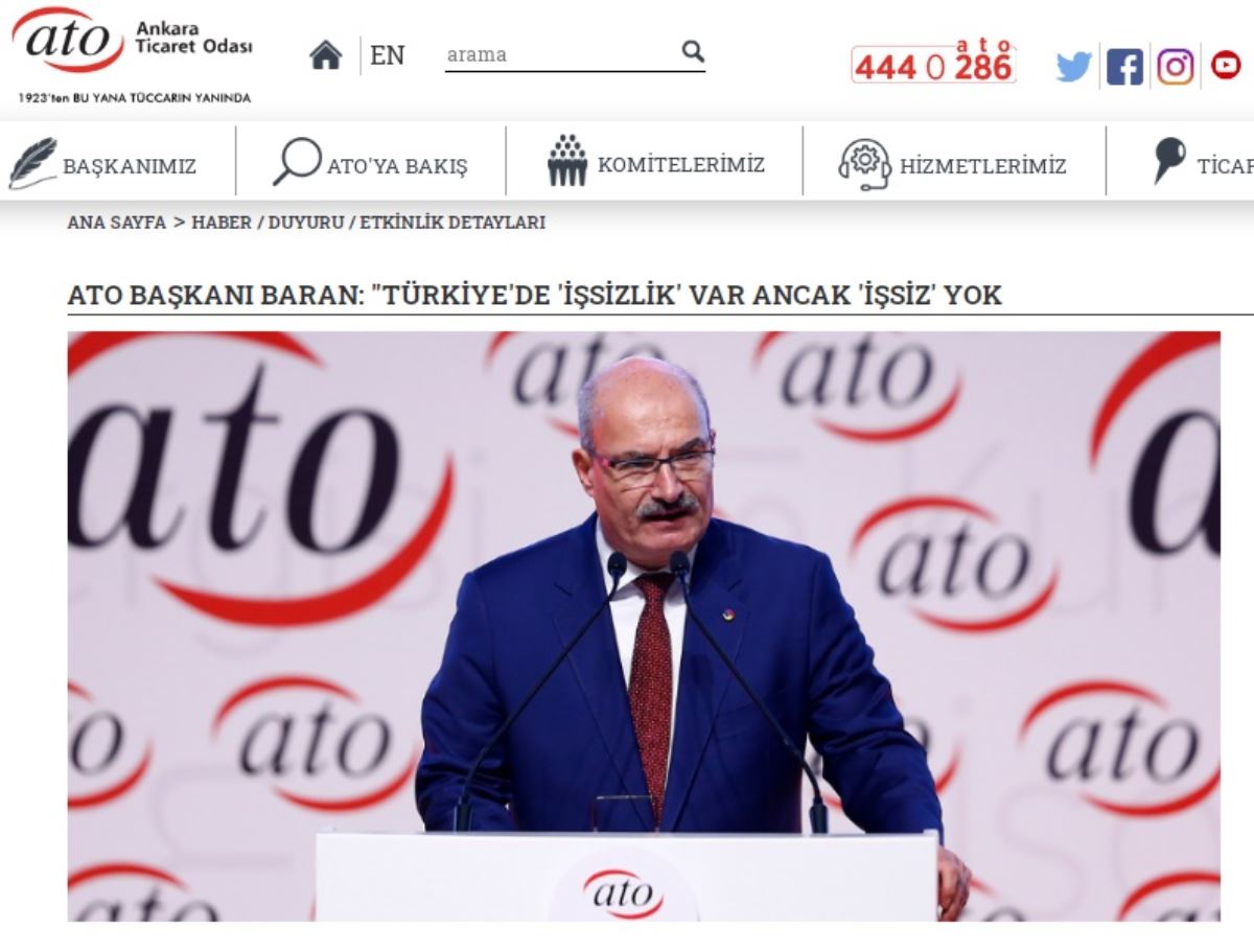 Baran’ın açıklaması, ATO’nun internet sitesinde “ATO Başkanı Baran: ‘Türkiye’de işsizlik var ancak işsiz yok” başlığıyla yayımlandı.