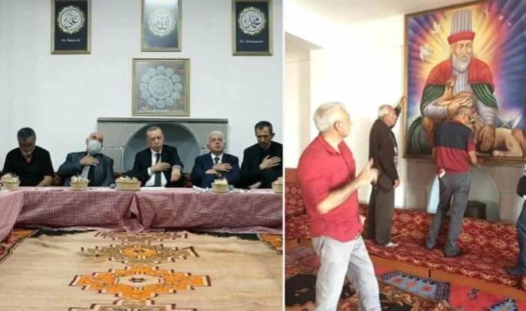 Ama Cumhurbaşkanımızın ziyareti sırasında orada Alevi ritüellerine ve inancına, yüzyıllardan beri bugünlere kadar getirdiğimiz birçok baskı, zulüm ve katliamlara rağmen getirdiğimiz Alevilik inancımız son derece yozlaşmış bir şekilde, örneğin her cemevimizde Hz. Ali, Hünkar Hacı Bektaş-ı Veli ve Atatürk’ün resimleri vardır. Baş köşemizde durur. Bu resimlerin olmadığı bir cemevi mümkün değildir. Gördüğümüz kadarıyla resimler yan tarafa kaydırılmış, arkasında Arapça bazı resimler konulmuş. Bu resimden Cumhurbaşkanımızın cemevinde olup olmadığını anlamak bile güç.