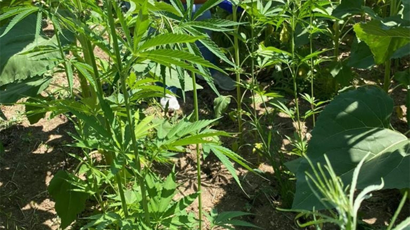 Ayçiçeği tarlasında 150 kök kenevir bitkisi ele geçirildi