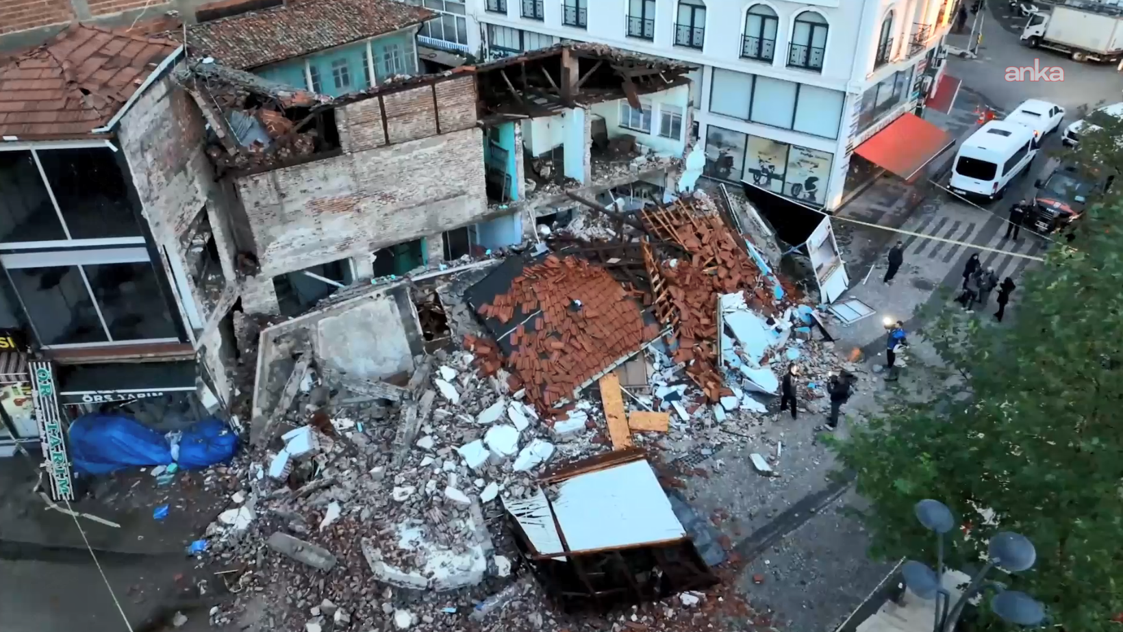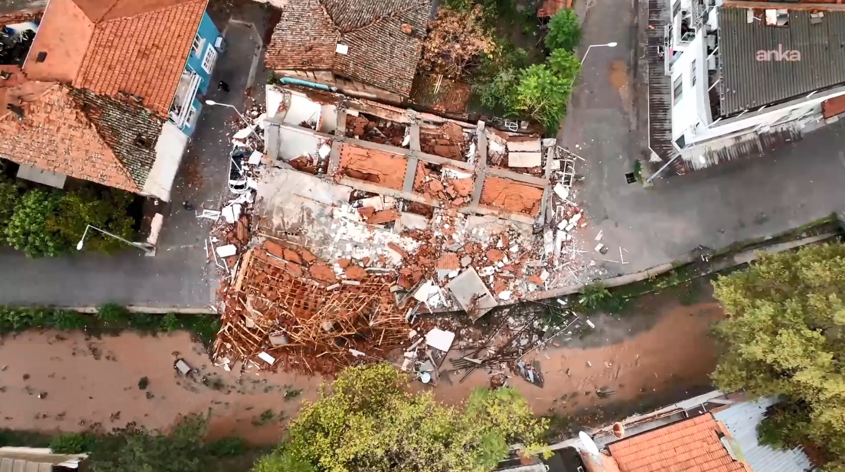 Balıkesir’in Sındırgı ilçesinde meydana gelen 6.1 büyüklüğündeki depremin ardından günün ilk ışıklarıyla birlikte yıkılan binalar görüntülendi.