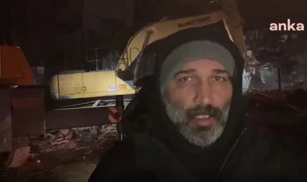 Gerçekten ne diyeceğimi bilemiyorum. Bu daha şehre girdiğimizin 10. dakikası karşılaştığımız manzara. Her yere ulaştık diyenlere sadece şunu göstermek istiyorum. Bakın burada herhangi bir kurtarma çalışması yok. Burada resmen hafriyat çalışması var. O AFAD Başkanı da Cumhurbaşkanı da her yer ulaştık diye açıklama yapıyorlar ya her yere ulaştık dedikleri bu. Kendi başlarına, kendi çabalarıyla iş yapmaya çalışan insanlar. Yapayalnız bir şehir. İş makineleri, yurttaşların kendileri tarafından getirildi buraya. Hiç kimse iş makinesi falan göndermiyor. Zaten kurtarma ekibi de yok. AFAD da yok. Kimse yok.”