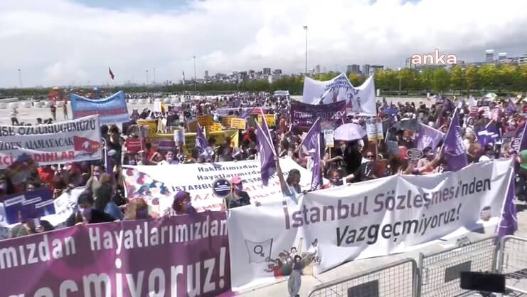 İstanbul Maltepe’deki büyük kadın mitingine ise KESK, DİSK, Kadın Cinayetlerini Durduracağız Platformu, Kadın Meclisleri’nin yanı sıra çok sayıda kadın örgütü üyesi katıldı. Eyleme İstanbul Barosu ile CHP, HDP, TİP gibi siyasi partiler de destek verdi. Eylemde, “Anayasayı, yasayı, sözleşmeyi uygula”, “İstanbul Sözleşmesi’nden vazgeçmiyoruz”, “Kadın cinayetlerini durduracağız” yazılı dövizler taşındı. “Asla yalnız yürümeyeceksin”, “Kararı geri çek sözleşmeyi uygula”, “Kadınlar eşit yaşayacak” şeklinde sloganlar atıldı.