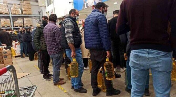 Sivas’ta bir market 5 litrelik ayçiçek yağını 59.90 TL’den satışa çıkardı. Yağın uygun fiyata satıldığını duyanlar markete akın etti.