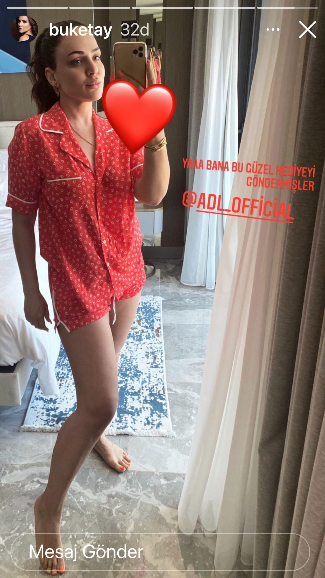 Aydın hikayesine giyim firmasını da etiketleyip, “Yaa bana bu güzel hediyeyi göndermişler” notunu düştü.