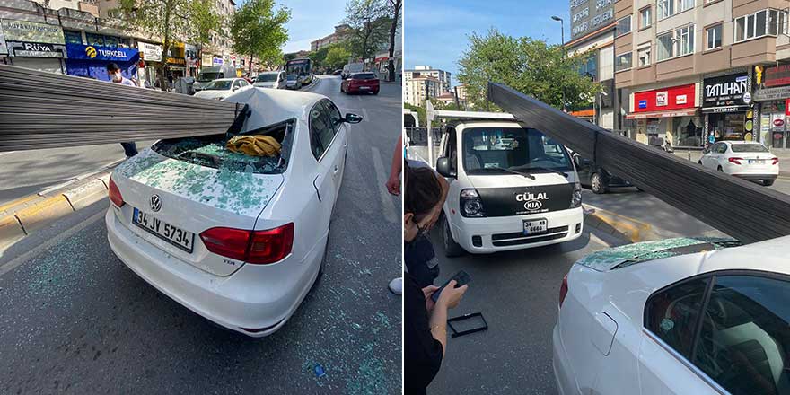 Kaza, Çekmeköy Taşdelen Mahallesi’nde dün yaşandı. Cadde üzerinde Murat Akkaya’nın kullandığı kamyonetin üzerinde bulunan demir çubuklar, önünde giden Furkan K.’nın kullandığı otomobilin üzerine düştü.