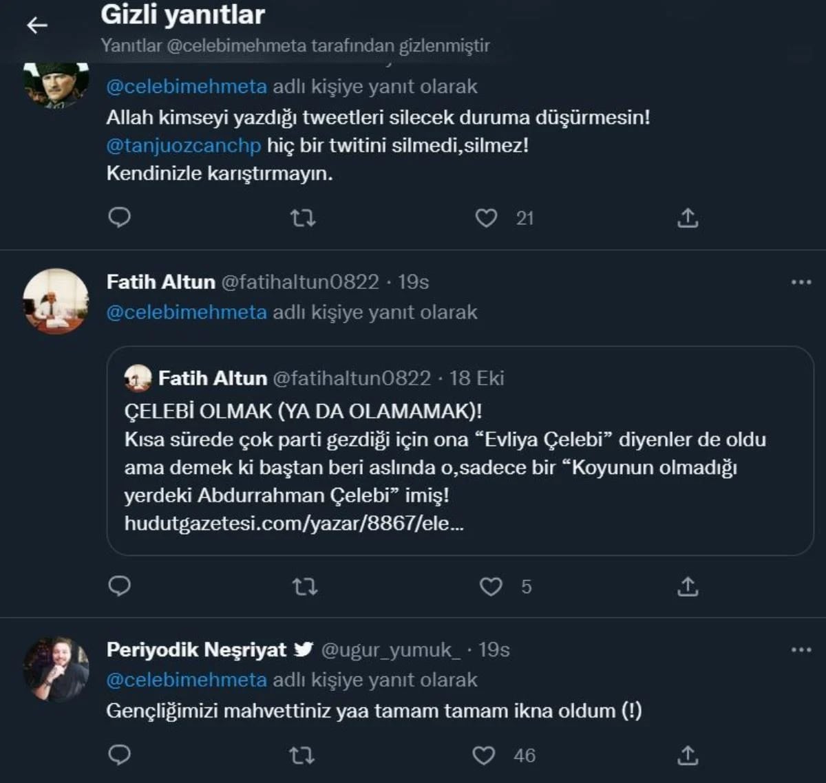 Çelebi’nin paylaşımına çok sayıda tepki geldi. Çelebi gelen tepkiler nedeniyle paylaşımına gelen yorumların bazılarını gizlemek zorunda kaldı.