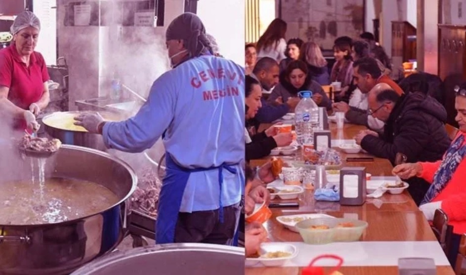 Yenişehir Belediyesi Aşevi ve Mersin Cemevi’nde pişirilen yemekler, Latin İtalyan Katolik Kilisesi'nde kalan 2 bin depremzedeye ikram ediliyor.