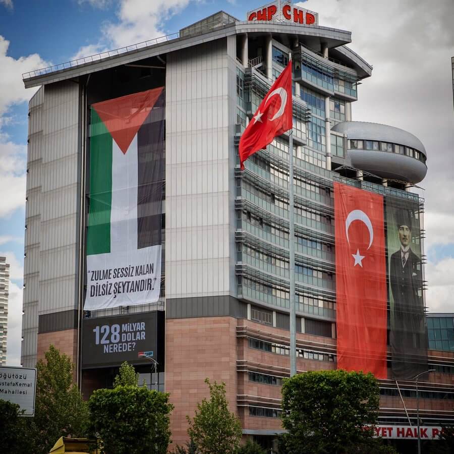 Cumhuriyet Halk Partisi,  Filistin ile dayanışmak için parti genel merkezine Filistin bayrağı astı.