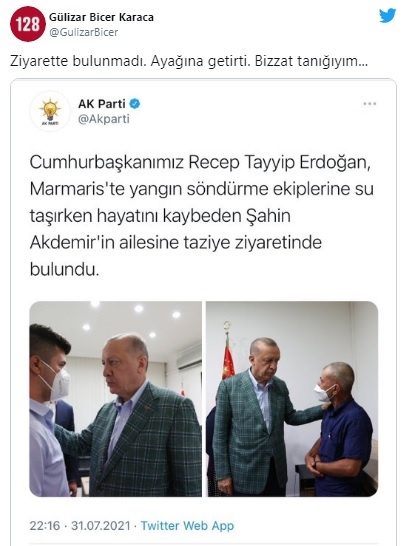 Öte yandan AKP’nin resmi Twitter hesabından Akdemir’in ailesinin Cumhurbaşkanı ve AKP Genel Başkanı Recep Tayyip Erdoğan tarafından ziyaret edildiğine dair bir paylaşım yapıldı.