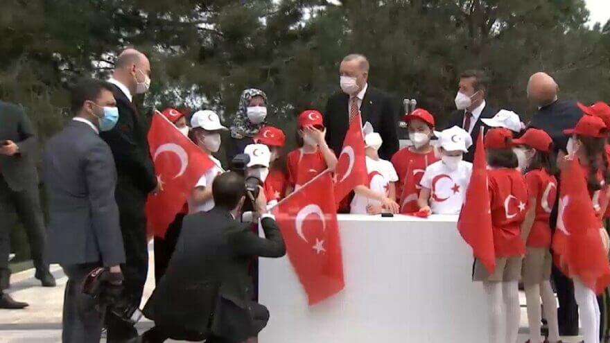 TBMM’deki özel oturumun devam ettiği sırada Cumhurbaşkanı ve AKP Genel Başkanı Recep Tayyip Erdoğan’ın Türkiye’nin en uzun bayrak direğinin bulunduğu Çamlıca Tepesi’nde bayrağı göndere çekme etkinliği yapması dikkat çekti.
