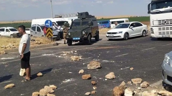 Şanlıurfa’nın Viranşehir ilçesinde bir grup çiftçi elektrik kesintilerini protesto ederek Viranşehir-Urfa karayolunu Siverek kavşağında taşlarla kapattı.