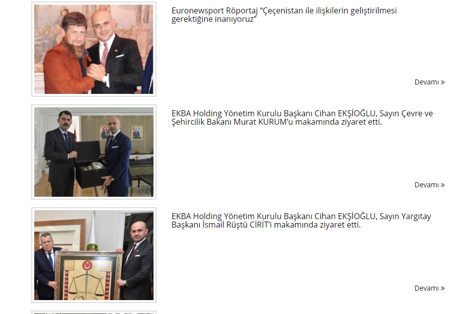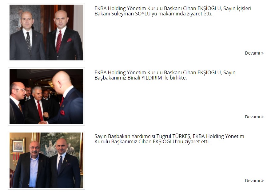 Ekşioğlu’nun İçişleri Bakanı Süleyman Soylu, Çevre ve Şehircilik Bakanı Murat Kurum, Yargıtay Başkanı İsmail Rüştü Cirit ve Binali Yıldırım gibi isimleri makamında ziyaret ettiği görüldü. Ziyaretlere ilişkin fotoğraflar holdingin internet sitesinde paylaşıldı.