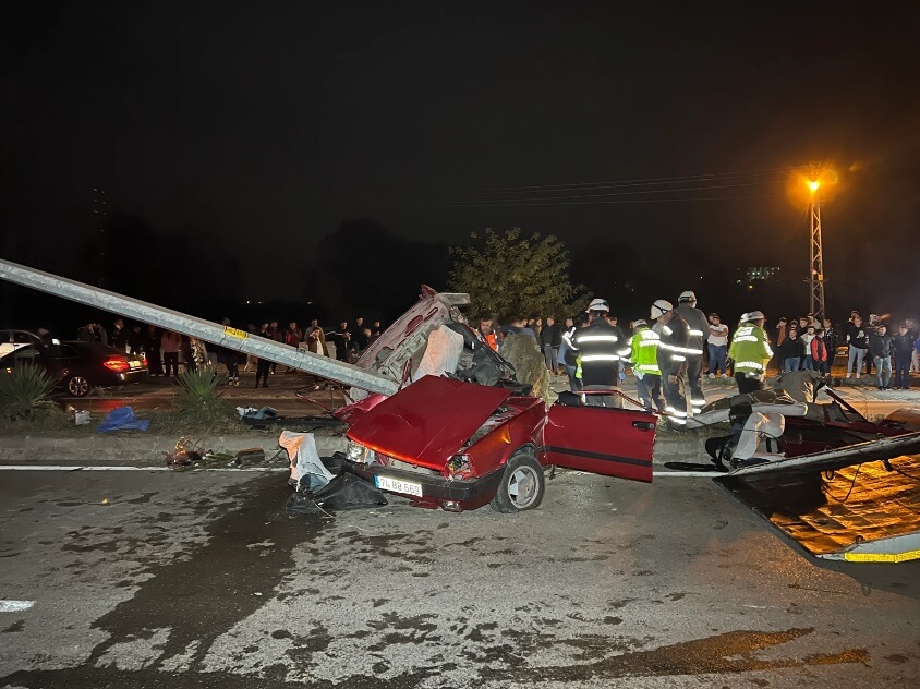Kaza, gece saatlerinde Bartın Toptancılar Sitesi önünde meydana geldi. Ehliyetsiz Mustafa Aloğlu yönetimindeki 74 BB 669 plakalı otomobil, sürücüsünün direksiyon kontrolünü yitirmesi sonucu refüjdeki aydınlatma direğine çarptı. Çarpmanın şiddetiyle otomobil ortadan ikiye bölünürken, direk ise yan yattı.