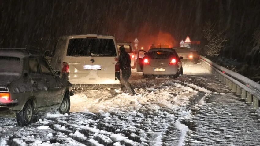 Şahin Tepesi bölgesinde uzun kuyruklar oluştu. Bölgede kar kürüme ve tuzlama çalışması yapıldı.