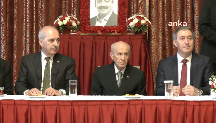 Burada DEM Parti Eş Genel Başkanları Tülay Hatimoğulları ve Tuncer Bakırhan, Grup Başkanvekilleri Sezai Temelli ve Gülistan Kılıç Koçyiğit, Antalya Milletvekili Saruhan Oluç ve Sırrı Süreyya Önder’in abisi Ali Önder ile DEM Parti Grubu’na başsağlığında bulunan Bahçeli, kendisinden önce taziye ziyaretine gelen TBMM Başkanı Numan Kurtulmuş ile yan yana oturdu ve DEM Partililerle bir süre sohbet etti.