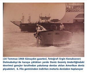 Hele o ABD 6. Filo askerlerinin 16 Temmuz 1968’de Deniz Gezmiş önderliğindeki devrimci gençlik tarafından Dolmabahçe’den denize dökülmesi eyleminin fotoğrafları… 6. Filo askerlerinin denize atılmalarının ve açıktaki 6. Filo gemisinden indirilen sandallarla denizden toplanmalarının fotoğrafları ancak ABD’nin Vietnam’daki yenilgisinin fotoğrafları ile kıyaslanacak değerdedir.