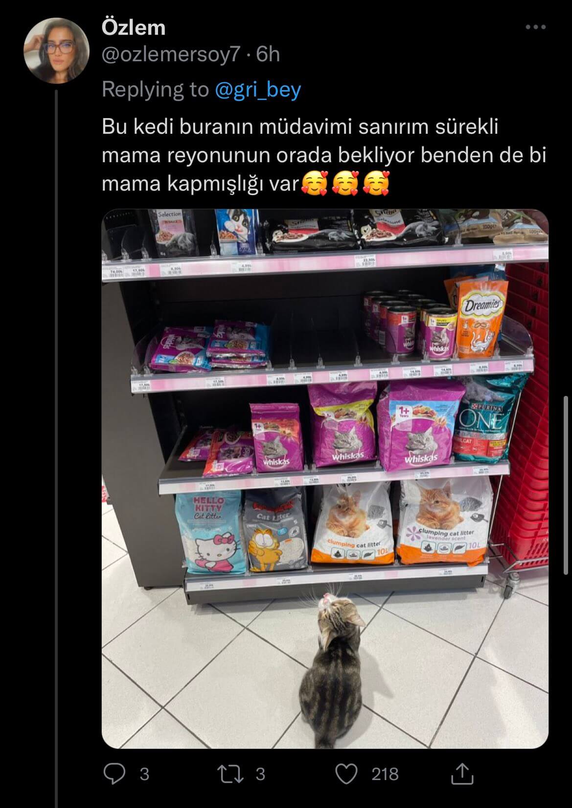 Mağaza müdürü Ayfer Küçük ise, “Bu mağazada çalışıyorum. Ben geleli 2 ay oldu ama Nokta burada benden daha eski bir personel, 2 yıldır burada çalışıyor. Mama reyonunu keşfediyor. O gün bugündür de kendisi geliyor buraya onun için iki miyav bir mama ediyor. Hepimizi kandırabiliyor. Yani seviyoruz kedileri. Biz de alıyoruz, müşterilerimiz de alıyor herkese mama aldırıyor yani. Aldırmadığı çok nadirdir. Ne yapar eder o mamayı mutlaka aldırır. Gerekirse topallar, baygın yatıyormuş gibi yapar. Günlük ona kalsa 15-20 tane mama aldırır ama biz aldırmıyoruz. Çünkü onun kuru mama da yemesi gerekiyor” diye konuştu.