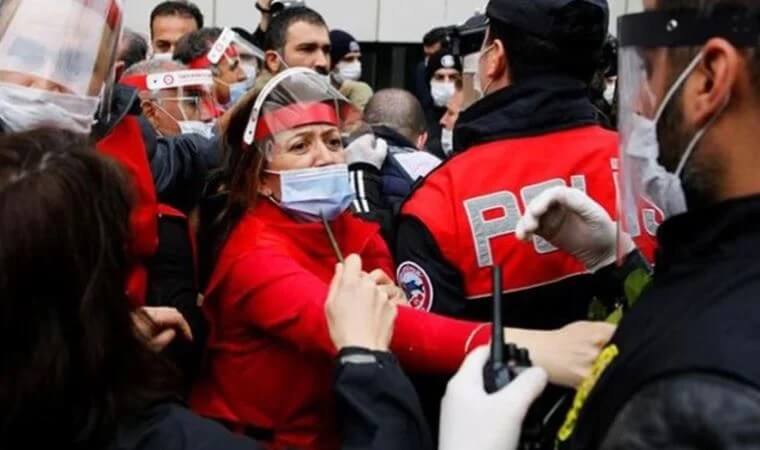 DİSK Genel Başkanı Arzu Çerkezoğlu ile sendika yönetici ve üyeleri, 2020’deki 1 Mayıs kutlamaları sınasında DİSK Genel Merkezi önünden Taksim’e yürümek istemiş, ancak polis engeliyle karşılaşmıştı.