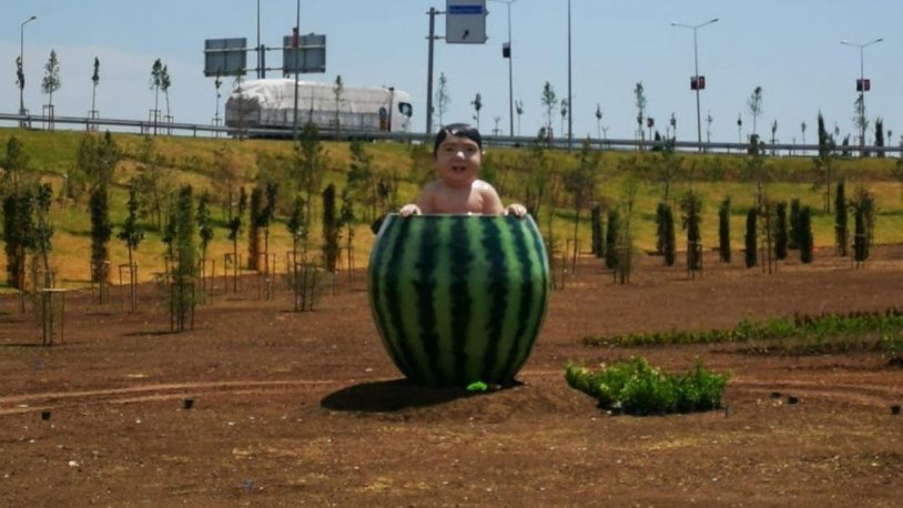 Diyarbakır’da tartışmalara neden olan karpuz içindeki çocuk ve tatlıcı heykelleri düzenleme için Büyükşehir Belediyesi tarafından kaldırıldı.