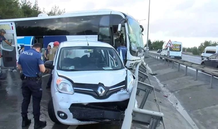 Eyüpsultan’da sabah saatlerinde yağışın da etkisi ile aralarında yolcu otobüsünde bulunduğu 6 araç zincirleme kazaya karıştı.