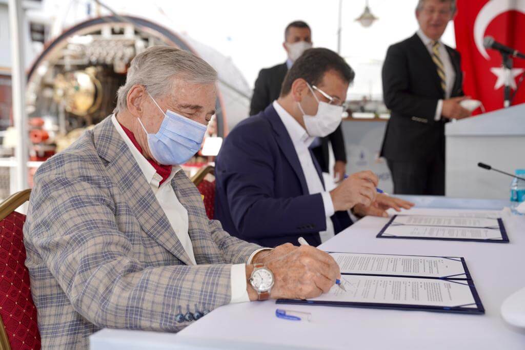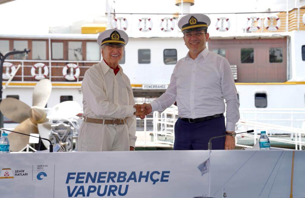 Vapur üzerinde yapılacak teknik işlemleri aktaran İmamoğlu, Haliç’in kent ve turizm açısından önemine dikkat çekti. “Biz bu alanı, Haliç’in her iki yakasını, Eminönü’nden Alibeyköy’e, Karaköy’den Alibeyköy’e bu iki hattı da sıkı bir turizm, tarihi bir rota olarak değerlendireceğiz” diyen İmamoğlu, “Bu yönde çalışmalarımız devam ediyor. Açık bir masada bu süreci yönetiyoruz. Bütün parçalarını, bütün partnerlerini, paydaşlarını da süreçte işin içine katarak ortak akılla, belki de İstanbul’a gelen bir turistin en az bir gün daha ilave akşamını, gününü arttıracak bir rota haline getirmeyi planlıyoruz” diye konuştu. Konuşmaların ardından, İmamoğlu ve Koç arasında, Fenerbahçe Vapuru’nun yenilenmesi ve süre uzatımına ilişkin protokol imzalandı. İmzaların ardından kaptan şapkalarını takan İmamoğlu ve Koç, kameralara poz verdi.