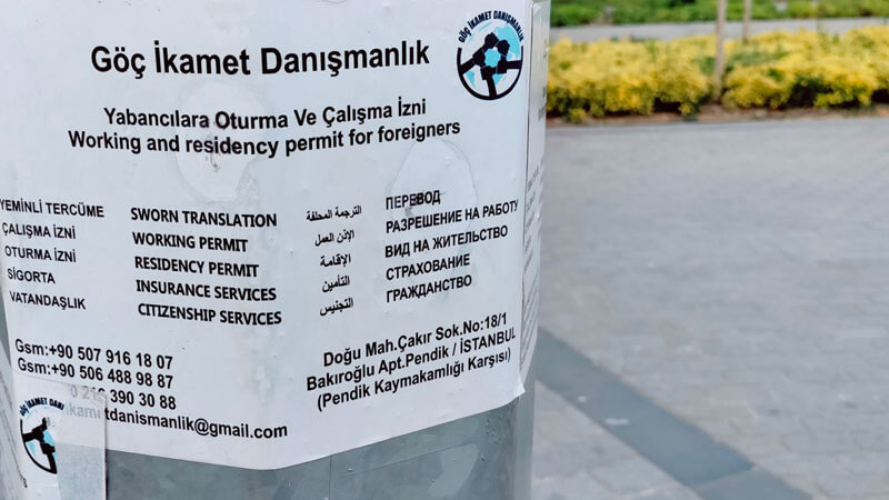 Türkiye’de sığınmacı krizi gündemden düşmezken her geçen gün sosyal medya düşen görüntüler daha çok şaşırtıyor. İstanbul’un belli noktalarında elektrik direklerine Göç İkamet ve Danışmalık isimli bir şirket tarafından asılan ilanlarda yabancılara oturma ve çalışma izni verdiği belirtiliyor.