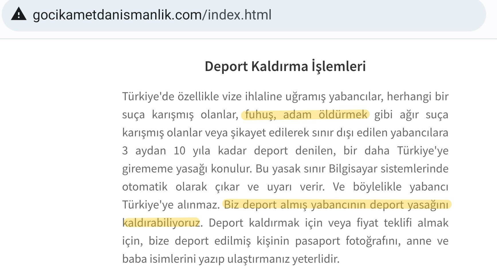 Yeniçağ’da yer alan habere göre yabancılar oturma ve çalışma izni başlığıyla asılan ilanda yer alan internet sitesinde ise “Fuhuş, adam öldürme gibi ağır suçlardan Türkiye’ye giriş yasağı konanların yasaklarını kaldırma” vaadinde bulunuluyor. Şirketin iletişim bilgileriyle birlikte İstanbul’daki bazı elektrik direklerine astığı ilanlar dikkat çekti.