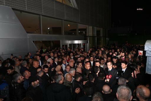 Halk TV önünde toplanan çok sayıda yurttaş ve parti temsilcisi “Özgür basın susturulamaz”, “Gözaltılar, tutuklamalar, baskılar bizi yıldıramaz”, “Kurtuluş yok tek başına ya hep beraber ya hiçbirimiz” sloganları attı.