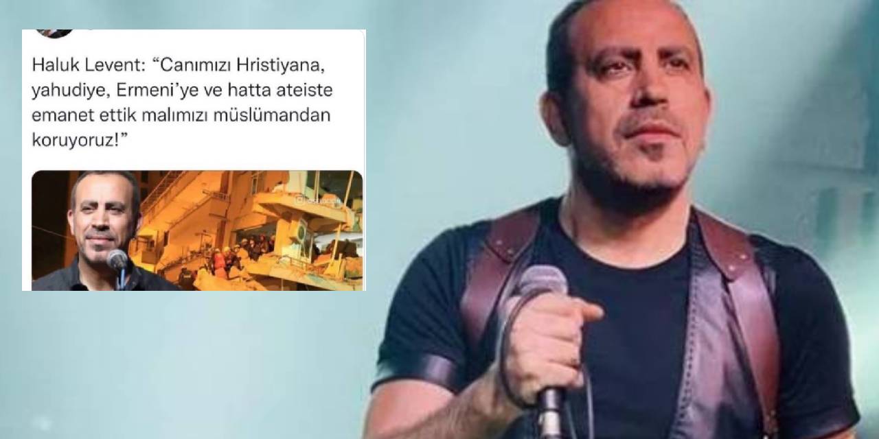 Kurucusu olduğu Ahbap Derneği ile depremden etkilenen bölgelere giden Haluk Levent, kendisine ait olduğu iddia edilen “Canımızı Hıristiyan’a, Yahudi’ye, Ermeni’ye ve hatta ateiste emanet ettik, malımızı Müslüman’dan koruyoruz!” paylaşımının gerçek dışı olduğunu belirtti.