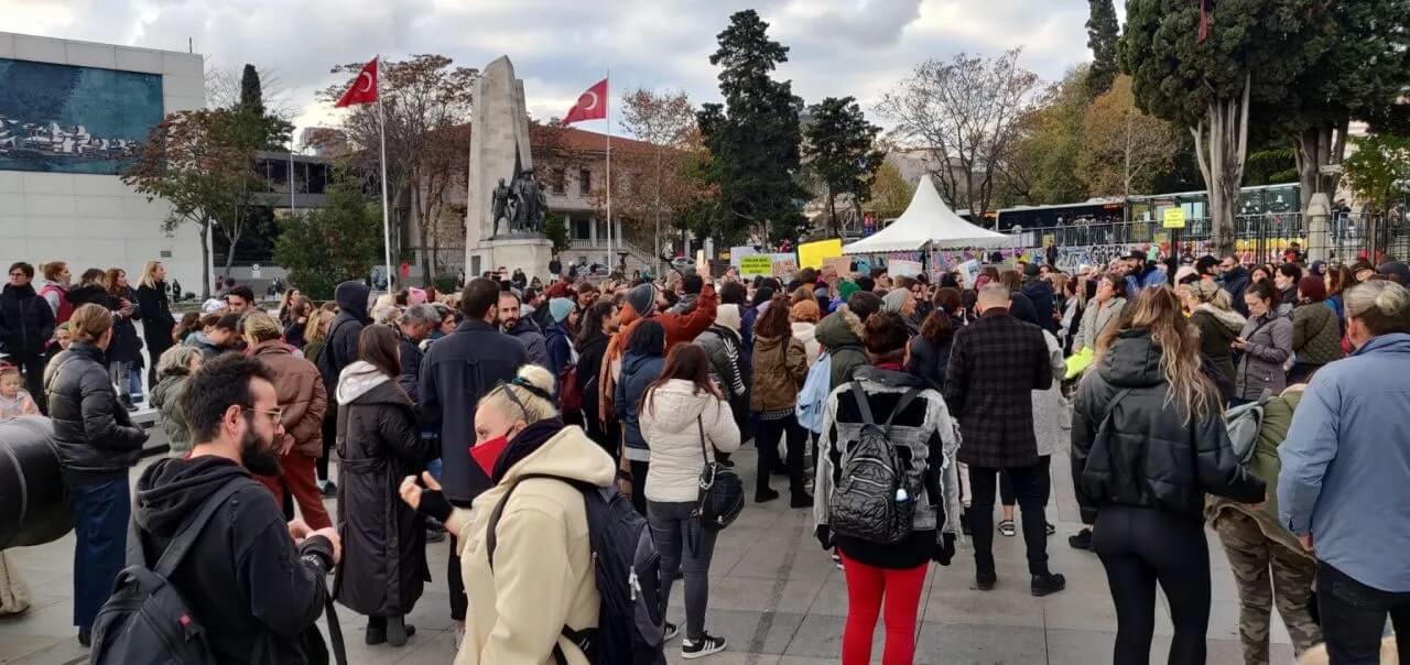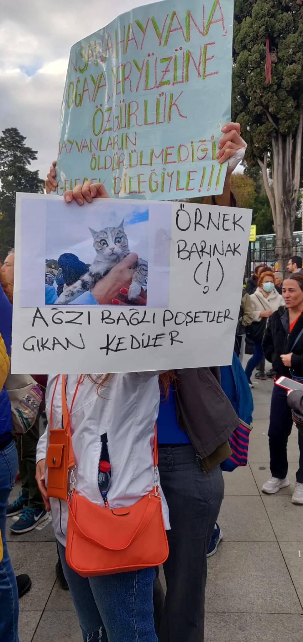 Beşiktaş’taki protestoya çok sayıda insan hayvanlarıyla birlikte katıldı.