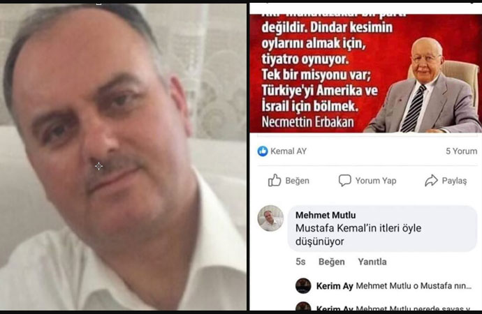 Çanakkale Gelibolu Gazi Süleyman Paşa Cami (Büyük Cami) imamı Mehmet Mutlu’nun sosyal medyada, Necmettin Erbakan’ın sözlerini içeren paylaşımın altına yaptığı “Mustafa Kemal’in itleri öyle düşünüyor” yorumu büyük tepki çekti. Mehmet Mutlu, daha önce de hutbeye kılıçla çıkmasıyla haber olmuştu.
