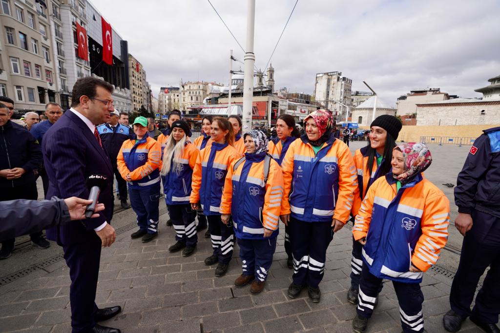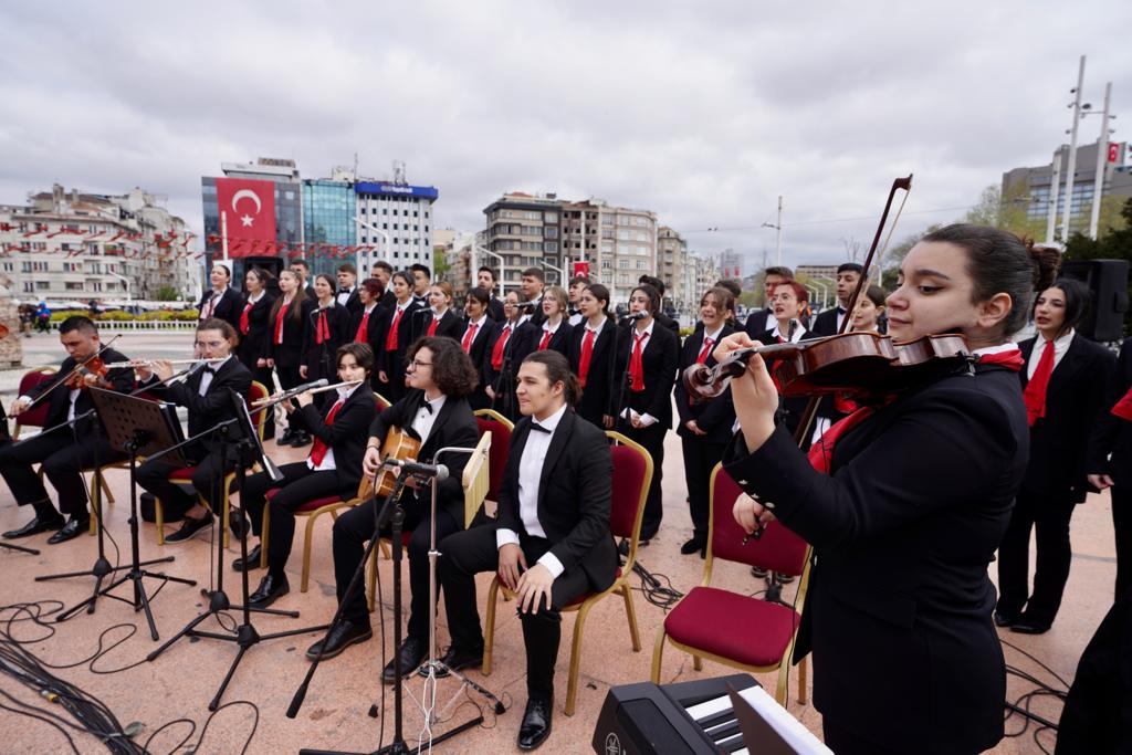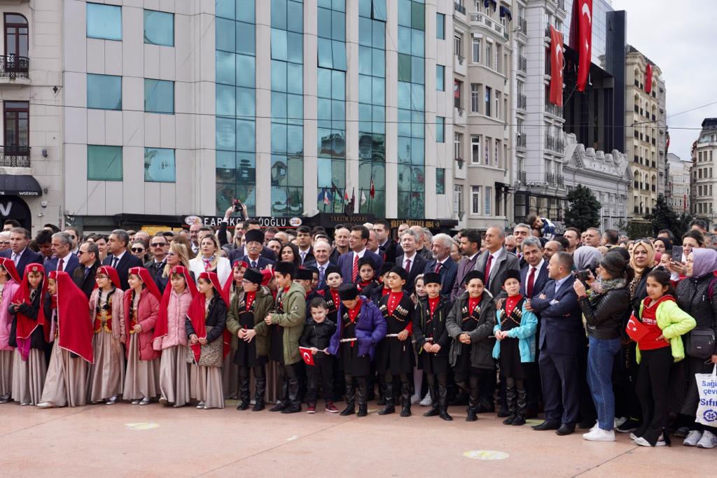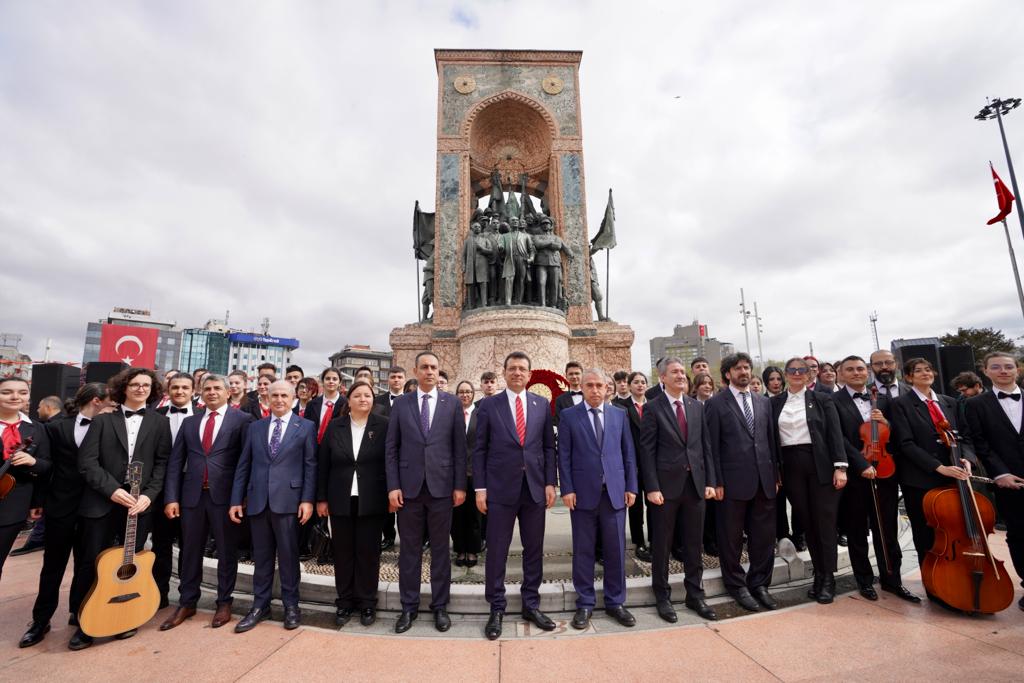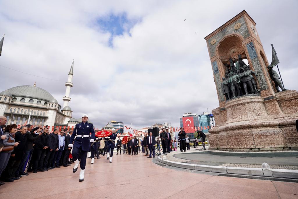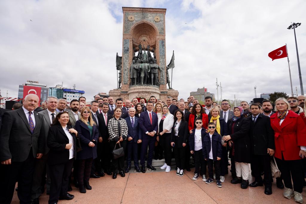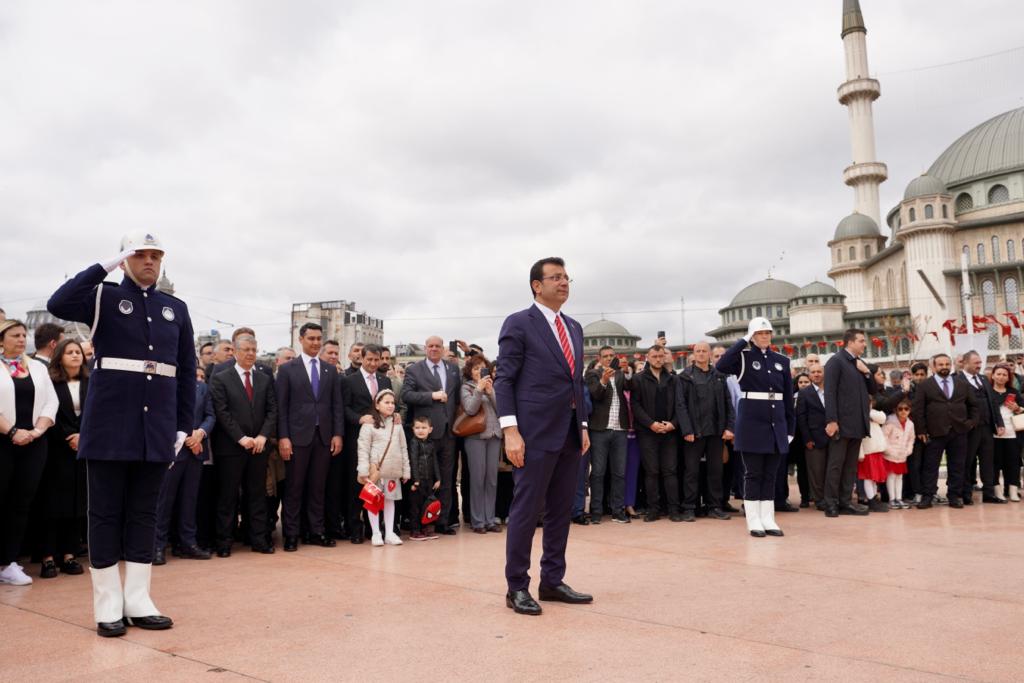 İstanbul Büyükşehir Belediye (İBB) Başkanı ve Millet İttifakı’nın Cumhurbaşkanı Yardımcısı adayı Ekrem İmamoğlu, 23 Nisan Ulusal Egemenlik ve Çocuk Bayramının 103. yıl dönümünde Taksim Cumhuriyet Anıtı’nda düzenlenen resmi törene katıldı. Törenin resmi bölümü, İl Milli Eğitim Müdürü Levent Yazıcı tarafından anıta çelenk konulması, saygı duruşunda bulunulması ve İstiklal Marşı’nın okunmasıyla son buldu. İmamoğlu, resmi törenin bitiminden sonra, zabıta mangası eşliğinde getirilen İBB çelengini Cumhuriyet Anıtı’na bıraktı. İmamoğlu’nun ardından siyasi parti ve sivil toplum kuruluşlarının çelenkleri de anıt çevresindeki yerini aldı. Törende, Şehit Anıl Kaan Aybek Ortaokulu 7. öğrencisi Meyra Mendi de M. Necati Öngay’ın “Egemenliğin Tadı” adlı şiirini okudu.