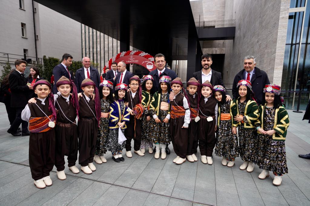 Alanda bulunan çocuklar ve velileriyle anı fotoğrafları çektiren İmamoğlu, İstanbul Valiliği’nin Taksim Atatürk Kültür Merkezi Tiyatro Salonu’nda düzenlediği 23 Nisan kutlama programına da katıldı.