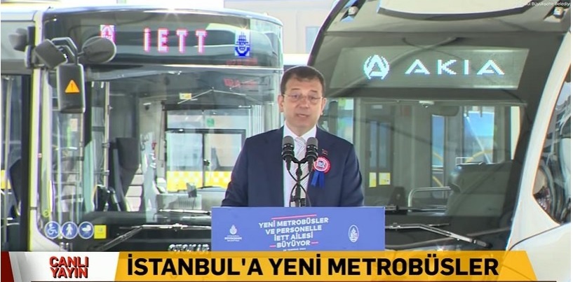 Mevcuttaki metrobüs filosunun büyük bölümünün 10 yıllık araçlardan oluştuğu bilgisini paylaşan İmamoğlu, “Sefer süresi dolmuş, tabiri caizse artık hizmetini kaliteli veremeyen, istediği kapasitede çalışamayan ve sık sık arıza yapan bir envanteri söz konusu. Genel anlamda metrobüs filomuzun biraz bitkin, biraz yorgun olduğunun farkındayız. Tabii bu can damarı hattımızı kaderine terk edemezdik. İstanbullulara bahaneler oluşturacak bir yönetim de değiliz. Metrobüs hattındaki otobüsleri yenilemek için, özellikle büyük çaba gösterdik. Hemen yaptığımız araştırmalarla -ne hikmettir ki genelde kolay ikna edemiyoruz- ikna ederek, Meclis’ten oy birliğiyle bir borçlanma limiti çıkartarak, 300 yeni otobüsü İstanbul’umuza kazandırmak adına heyecanla yola çıktık neredeyse iki yıl önce. Buradan oy birliğiyle aldığımız onay oyununun ikinci perdesi meğerse Ankara’daymış, Ankara’da oynanıyormuş. Ve bizim o kredimiz, Cumhurbaşkanlığından hala onay alamadı. Yani şu anda şu yüz 160’ın yanına 300 tane daha katmış olsaydık, biz şu an eskimiş envanteri tümden yenilemiş olurduk. İstanbullular pırıl pırıl, hasarsız, sıkıntısız otobüslerinde, ne yazık ki bizden önceki dönem ihmal edildiğinden eskimiş otobüs filosunu yenilemiş olurdu” dedi.
