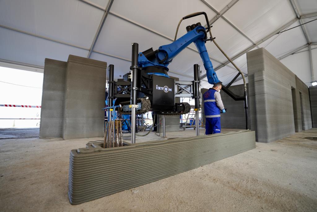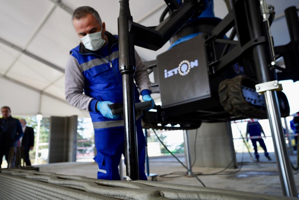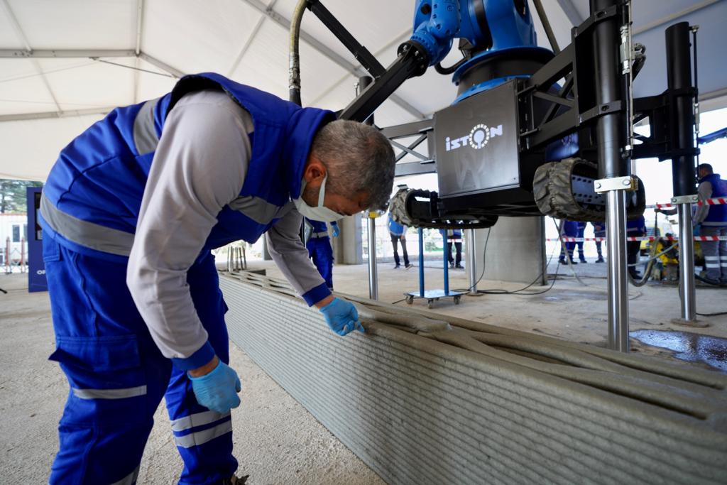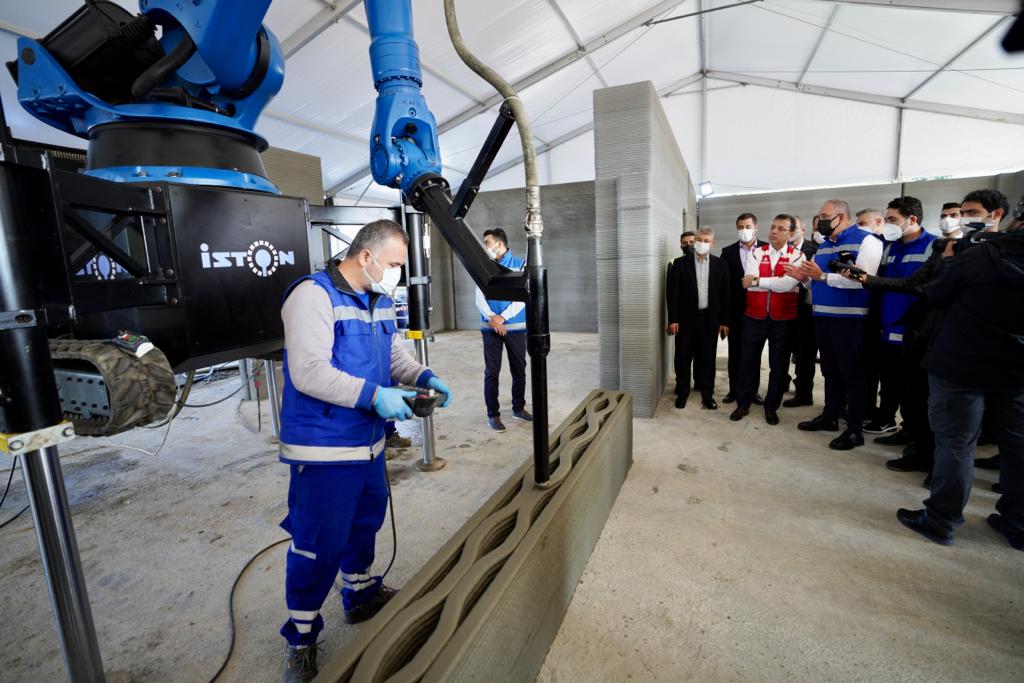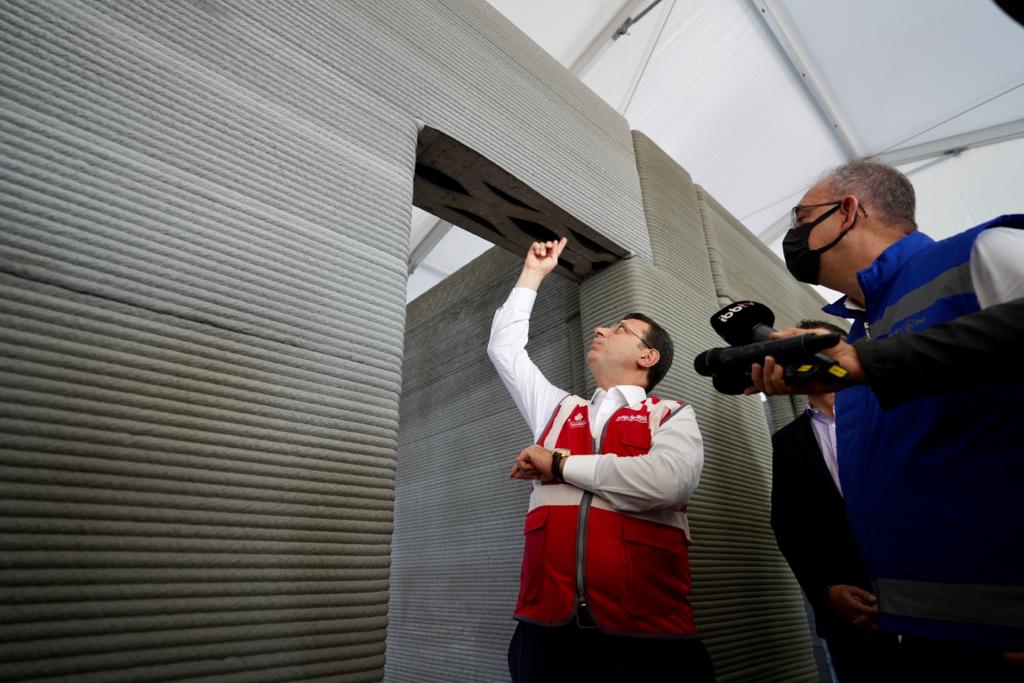 Yüksek ısı ve ses yalıtımı, çevreci teknolojisiyle de öne çıkan bina için 3D yazıcı teknolojisi için özel olarak yazdırılabilir C50/60 sınıfında beton harç geliştirildi. Robot kollarla inşaatı süren alanda inceleme gezisi yaptıktan sonra basın mensuplarına değerlendirmede bulunan İmamoğlu, “Teknolojik olarak çok yeni bir uygulamadan bahsediyoruz. Türkiye’de bir ilk. Çok kıymetli ve değerli. Bu sektörün içinden gelen birisi olarak böylesi bir pratiğin, böylesi hızlı bir imalat kabiliyetinin çok değerli olduğunu hissedebiliyorum. Belki burada 100 metrekarelik bir yapıyı konuşuyoruz ama bu işin önü çok açık. Ben bunu hissediyorum” dedi.