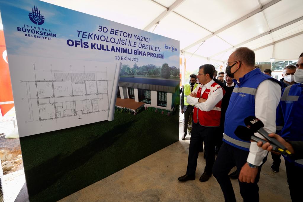 İstanbul Büyükşehir Belediye (İBB) Başkanı Ekrem İmamoğlu, İBB iştiraklerinden İSTON’un (İstanbul Beton Elemanları ve Hazır Beton Fabrikaları AŞ), İstanbul Çamlıca’da yapımını sürdürdüğü İBB Park ve Bahçeler Müdürlüğü Üsküdar Şeflik Ofisi’nin inşaat alanını gezdi. İmamoğlu, bittiğinde Türkiye’nin ilk 3D beton yazıcı teknolojisi kullanılarak inşa edilmiş yapısı olacak binada inceleme gezisi yaptıktan sonra basın mensuplarına, değerlendirmede bulundu.