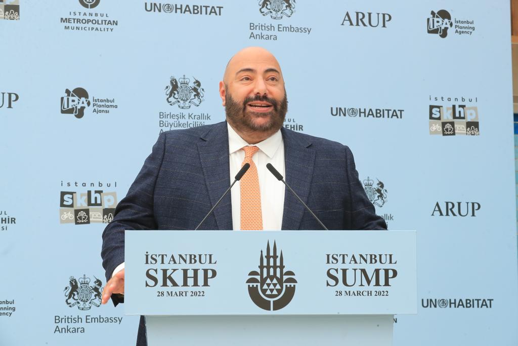 “İstanbul SKHP’yi, Birleşik Krallık’ın ‘Küresel Geleceğin Şehirleri Programı’ kapsamında; Ulaşım Daire Başkanlığı Ulaşım Planlama Şube Müdürlüğümüz koordinasyonu, ARUP yükleniciliği ve UN Habitat stratejik danışmanlığında gerçekleştirdik. Belediyemizde, Ulaşım Daire Başkanlığı, Ulaşım Planlama Şube Müdürlüğü başta olmak üzere, belediyemizin 23 biriminden oluşan iç paydaşlar ve ilçe belediyeleri ve STK’lar dahil 110 kadar dış paydaşla birlikte yaptık. Başlangıçta, ortasında ve sonunda 25 çalıştay ve 20 anketle birlikte, “Kimseyi arkada bırakma” prensibiyle çalıştık. Özetle bu sürece, ‘Cinsiyet Eşitliği ve Toplumsal Kapsayıcılık’ (CETKap) ilkesine göre, yüzde 73 temsil oranıyla temsiliyet elde ettik. Bir başka anlatımla, ‘yetersiz temsil edilen grupların’ sürece katılımını sağladık. Vizyonumuzu, ‘Sürdürülebilir ve dayanıklı bir gelecek için insan ve çevre odaklı, yenilikçi ve kapsayıcı bir ulaşım sistemi’ olarak tanımladık.”