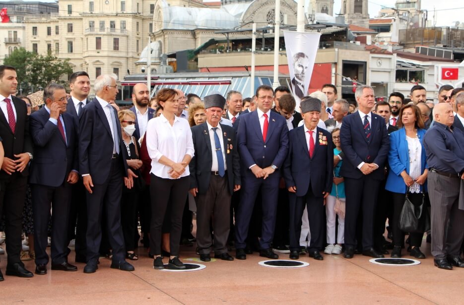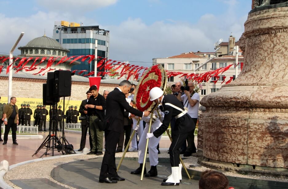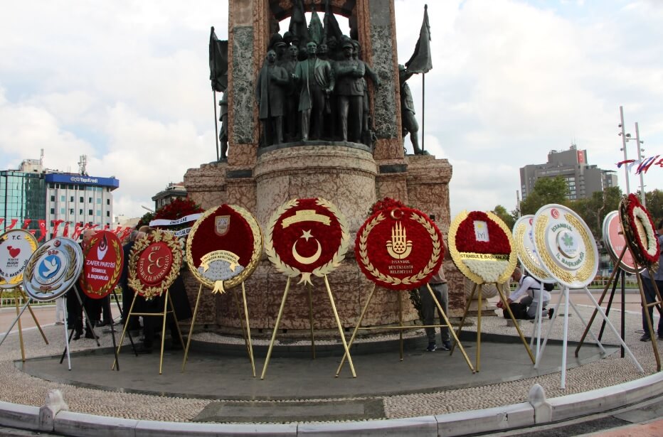 Zaferin 100. yıl kutlamaları İstanbul’da bugün saat 09.00’da Taksim Meydanı’ndaki Cumhuriyet Anıtı’na çelenk bırakma töreniyle başladı.