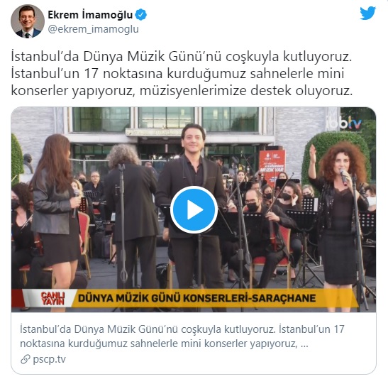 “İstanbul’da Dünya Müzik Günü’nü coşkuyla kutluyoruz. İstanbul’un 17 noktasına kurduğumuz sahnelerle mini konserler yapıyoruz, müzisyenlerimize destek oluyoruz”