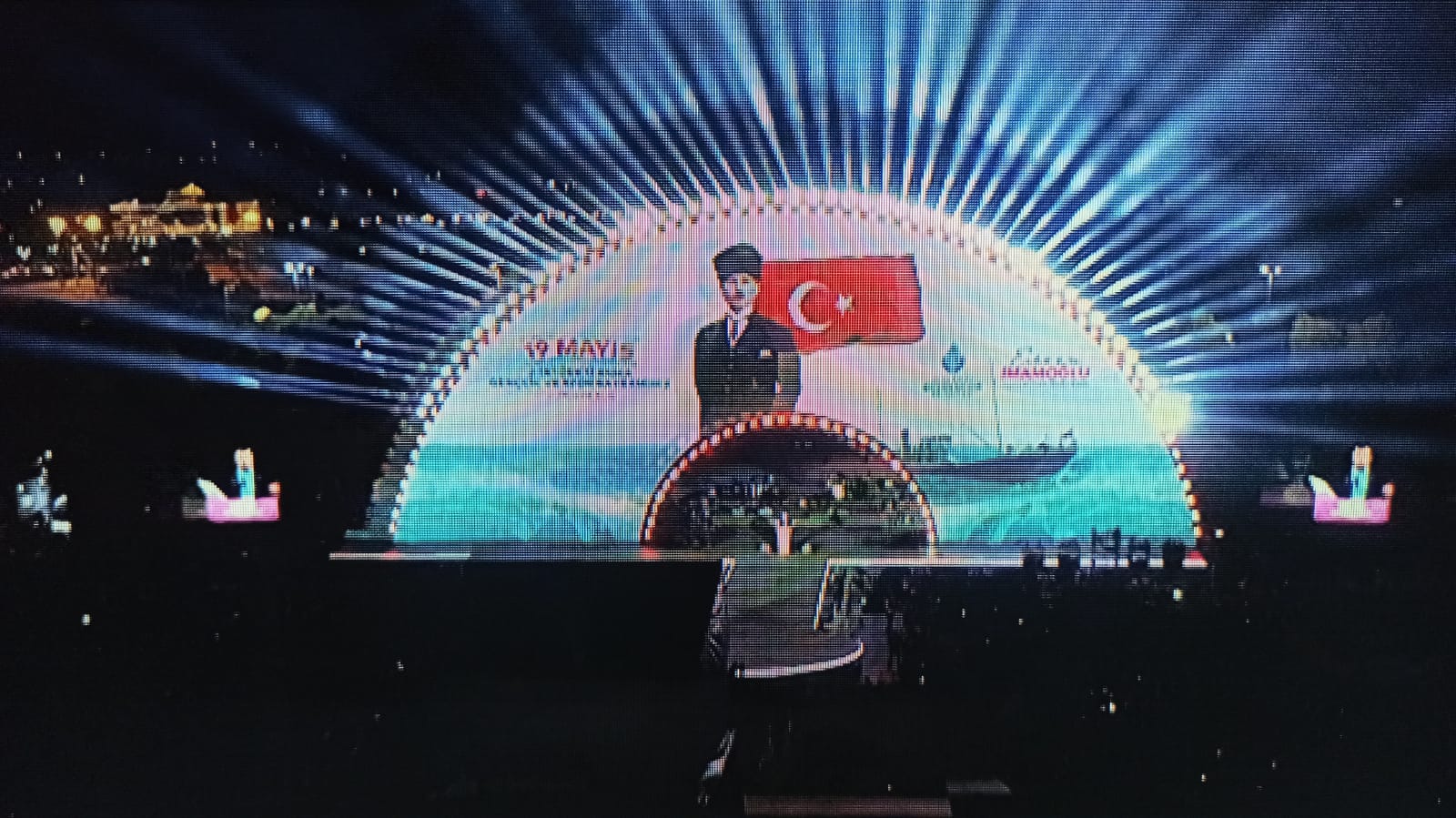 İmamoğlu’nun konuşmasının ardından Kurtuluş Savaşı’nın anlatıldığı video, 380 drone ile gerçekleştirilen görsel şölen ve “mapping” gösterisi sunuldu. İstanbullular, muhteşem görsel şölene hem alanda hem de canlı yayınla farklı kitle iletişim araçları aracılığıyla tanıklık etti. Gösterinin ardından sahnede bir araya gelen Altay, Adıgüzel, İmamoğlu çifti ve Kılıç ellerindeki Türk bayraklarını sallayarak vatandaşların bayram coşkusuna ortak oldu.19 Mayıs coşkusu, Murat Boz konseriyle noktalandı.