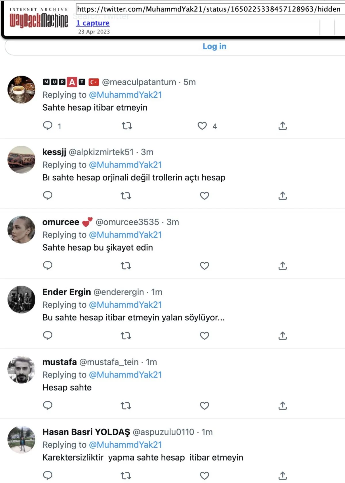 * Hesap sonra Nisan’da @___5N1K___ adıyla tweet atmaya başlıyor, ardından @MuhammdYak21 ve en son Ali_Yesilda oluyor.