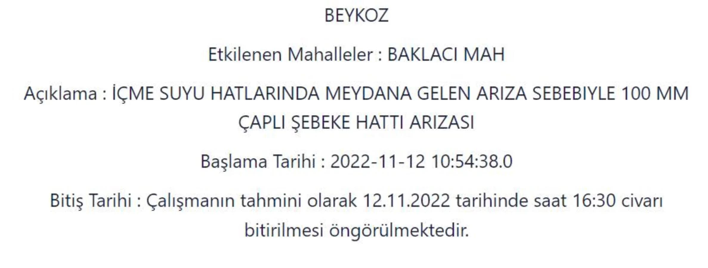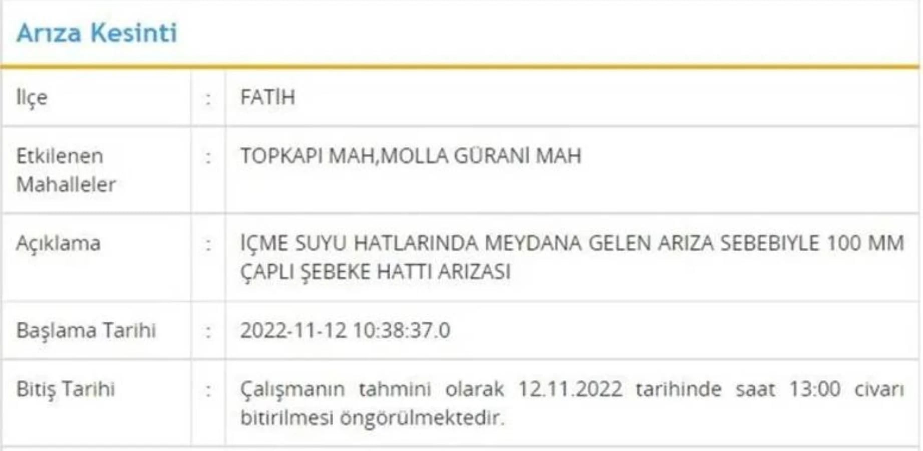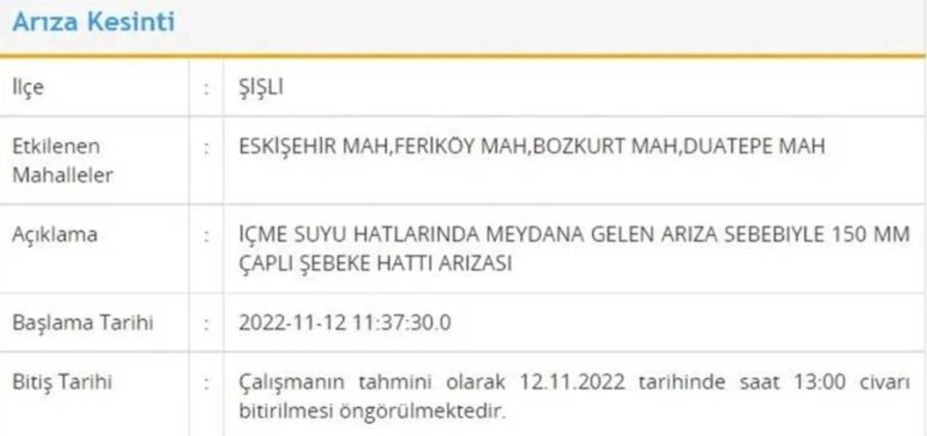 İSKİ’nin resmi internet adresinden yapılan açıklamada “Zaman zaman arızaların giderilmesinin ardından depoların ve isale hatlarının tam olarak istenen basınca ulaşması gecikebilmekte, kullanım yoğunluğundan dolayı gecikmeli olarak su alınabilmektedir” ifadelerine yer verildi.