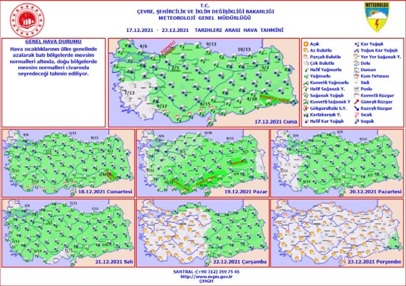 Meteoroloji Genel Müdürlüğü, hafta sonunu da kapsayan hava durumu tahmin raporunu paylaştı.