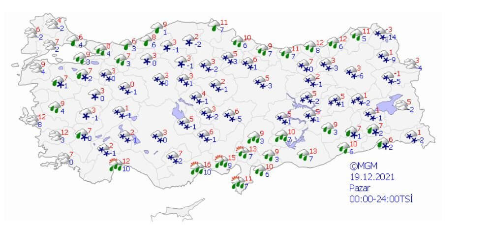 Öte yandan İstanbul, Kırklareli, Tekirdağ, Yalova da dahil 12 ilde ise sağanak yağış bekleniyor. Aralarında Ankara, Kırıkkale ve Bolu’nun bulunduğu 34 ilde ise kar yağışı bekleniyor.