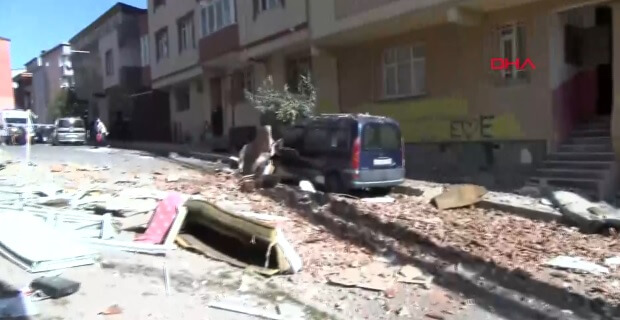 Sultangazi'de 5 katlı bir binanın en üst katında henüz bilinmeyen bir nedenle patlama meydana geldi. Patlama sonucu 2 kişi yaralandı. Dairenin duvarları sokağa düşerken araçlarda da hasar oluştu.